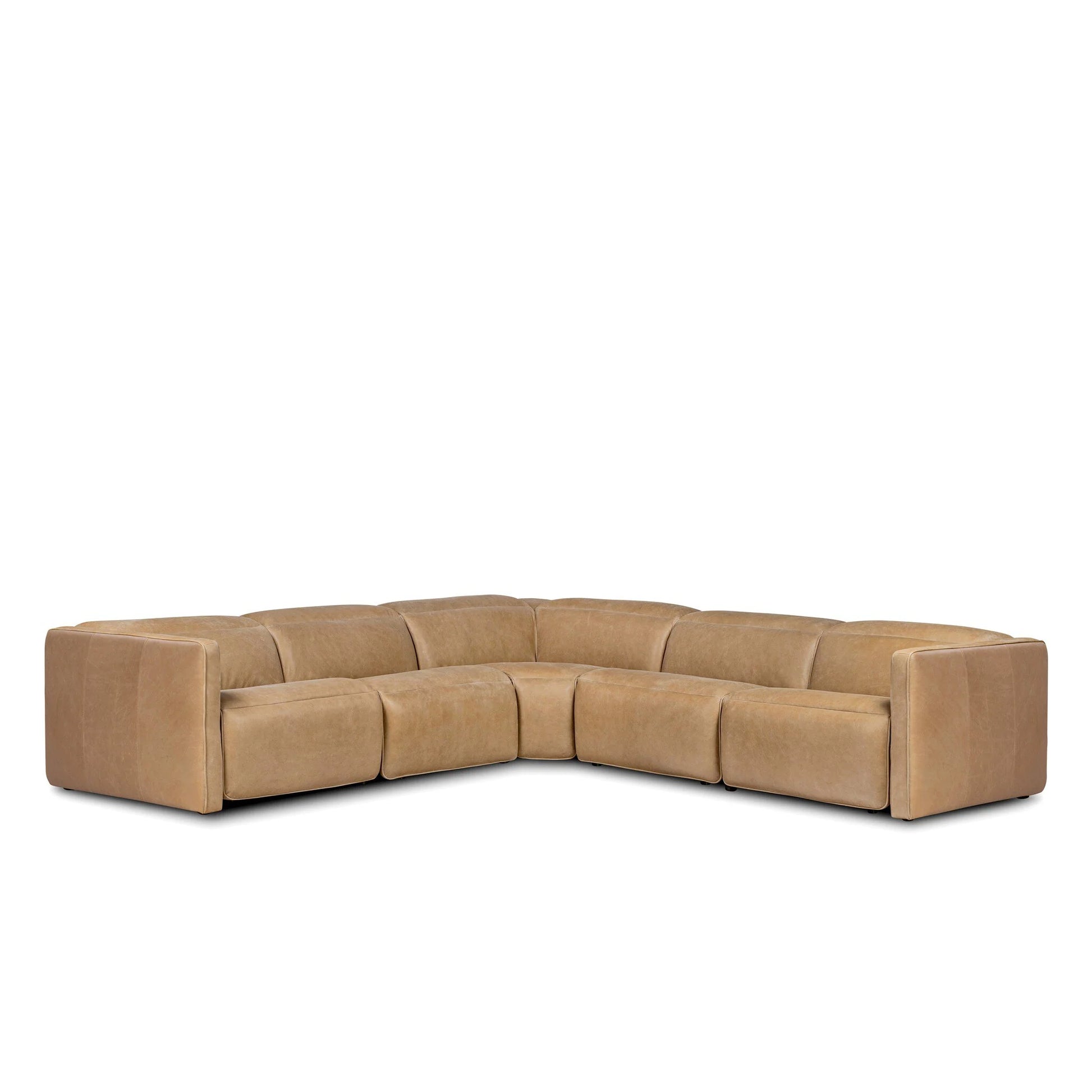 Recline and relax on this modern take on classic design. Chesterfield-style tufting runs along the sides of this smart recliner sofa. Customize your comfort level with the push of hidden buttons with pieces in our Power Motion collection. Sectional features straight arms with a medium to supportive sit and seat height. Zero-clearance design means the sectional can be placed up against a wall. Upholstered in thick top-grain leather with pronounced grain. Includes 9'5" power cord. There is a six-motor maximum per power outlet.