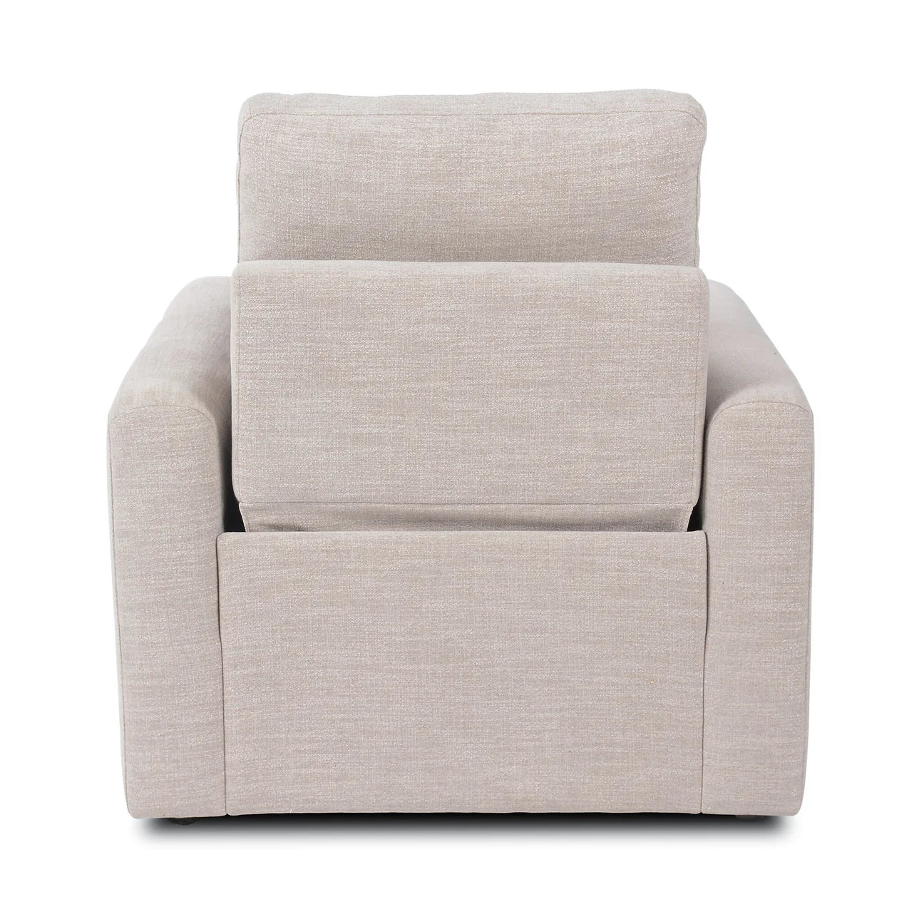 A modern, elevated take on the traditional recliner sectional. Customize your comfort level with the push of hidden buttons with pieces in our Power Motion collection. Recliner features a slightly higher seat and backrest, low, sleek arms, and a motion footrest. Plush feather-blend cushions create a relaxed look and feel. Fluff cushions regularly to maintain appearance. Zero-clearance design means the chair can be placed up against a wall. Performance fabrics are specially created to withstand spills, stains, high traffic and wear, ensuring long-term comfort and unmatched durability. Includes 9'5" power cord. There is a six-motor maximum per power outlet.